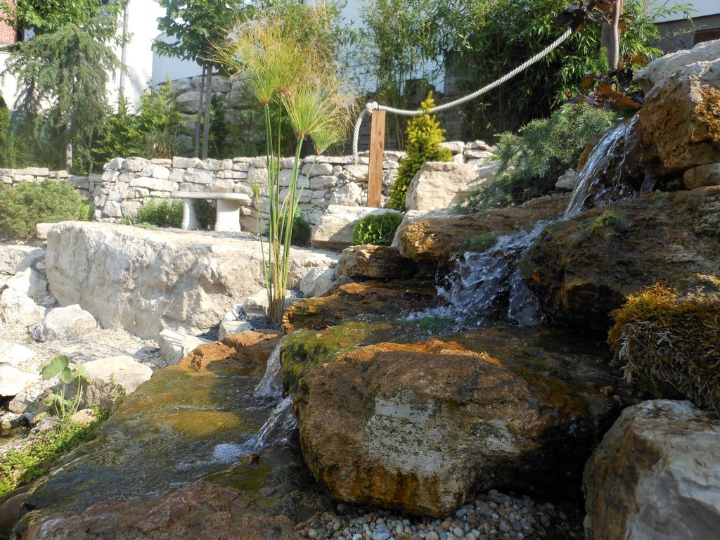 Nagy szabású kert átalakítás, ahol a víz kapta az egyik főszerepet.